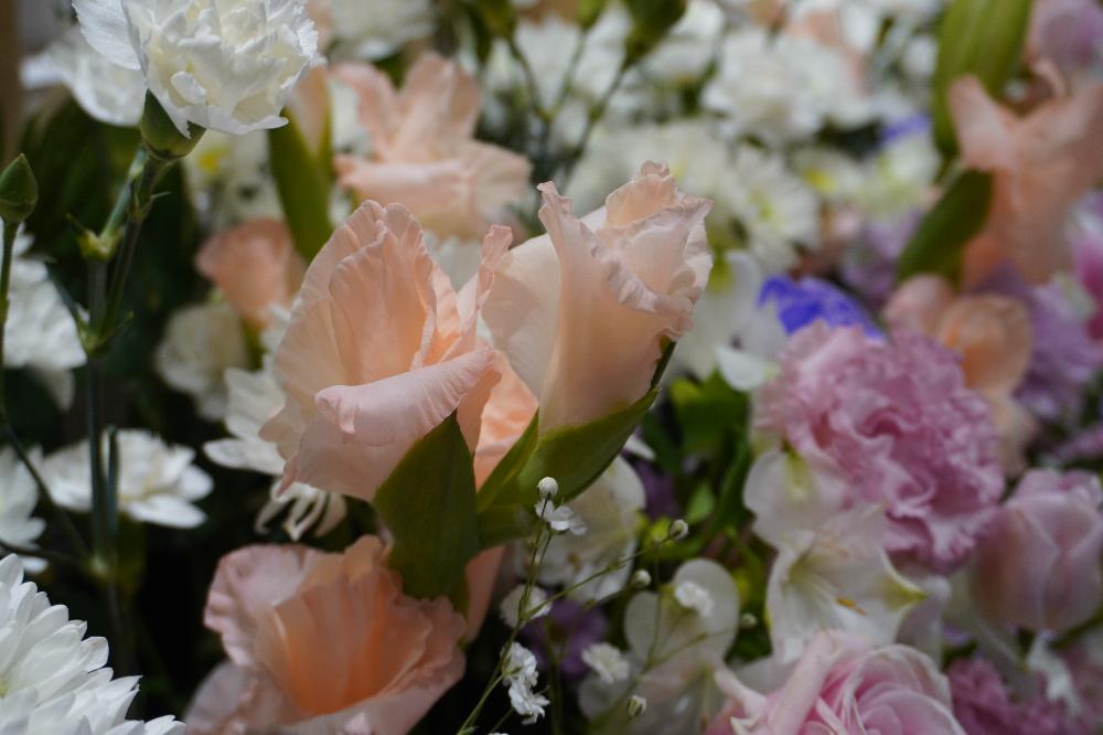 故人様がピンク色がお好きだったとのお話を伺いましたので祭壇もそのような感じにお作りさせていただきました。